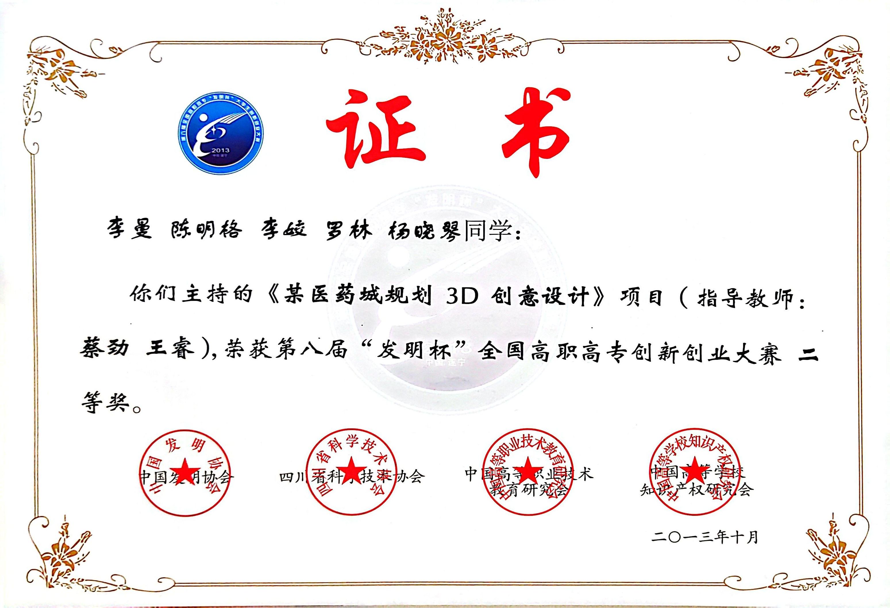 第八届“发明杯”全国高职高专创新创业大赛二等奖