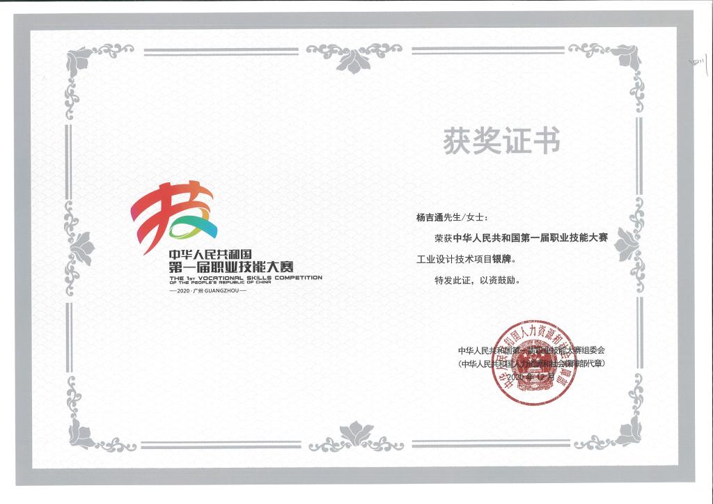全国第一届技能大赛银奖