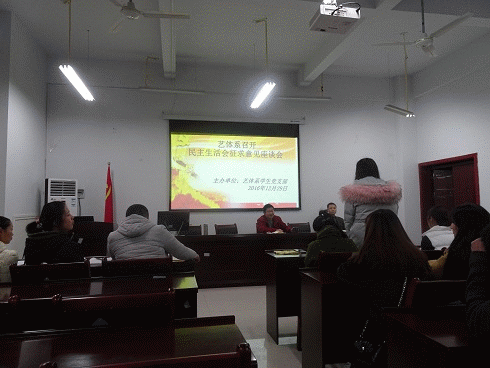 为认真开好2016年度的民主生活会,根据中共四川职业技术学院委员会《关于印发<关于在全体党员中开展“学党章党规、学系列讲话,做合格党员”学习教育的实施方案>的通知》(川职院委[2016]22号)文件和2016年12月12日学院党委关于开好专题组织生活会的通知的精神与要求,2016年12月29日下午,艺体系党总支书记郭登礼在系会议室组织召开了民主生活会征求意见座谈会,广泛听取师生在党建、党风廉政、学生管理、招生就业和工会“教职工小家”建设等方面的意见、建议。系党政办主任宋瑜以及辅导员、兼职班主任、师生党员代表参加了座谈会。