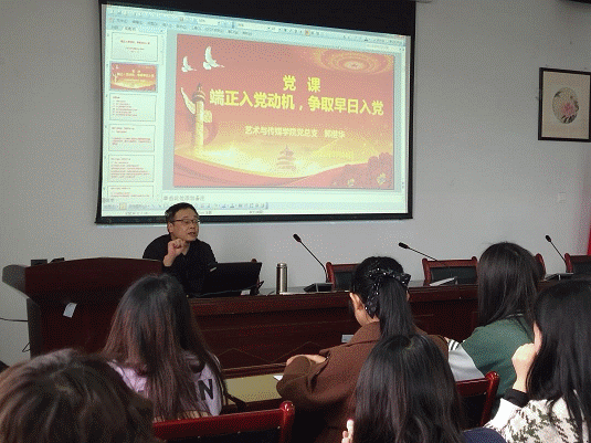 为进一步提高入党积极分子的政治理论水平和党性修养,不断加强入党积极分子队伍建设。3月23日下午4:00,艺术与传媒学院组织20级入党积极分子近50人在博雅楼M区408会议室开展了“端正入党动机,争取早日入党”为主题的党课培训学习。学院党总支书记郭继华同志担任主讲。