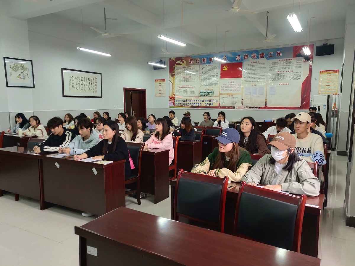 2023年10月19日下午,艺术与传媒学院党总支书记郭继华在四楼会议室,为四十余名学生党员和入党积极分子上了一堂意识形态专题党课。
