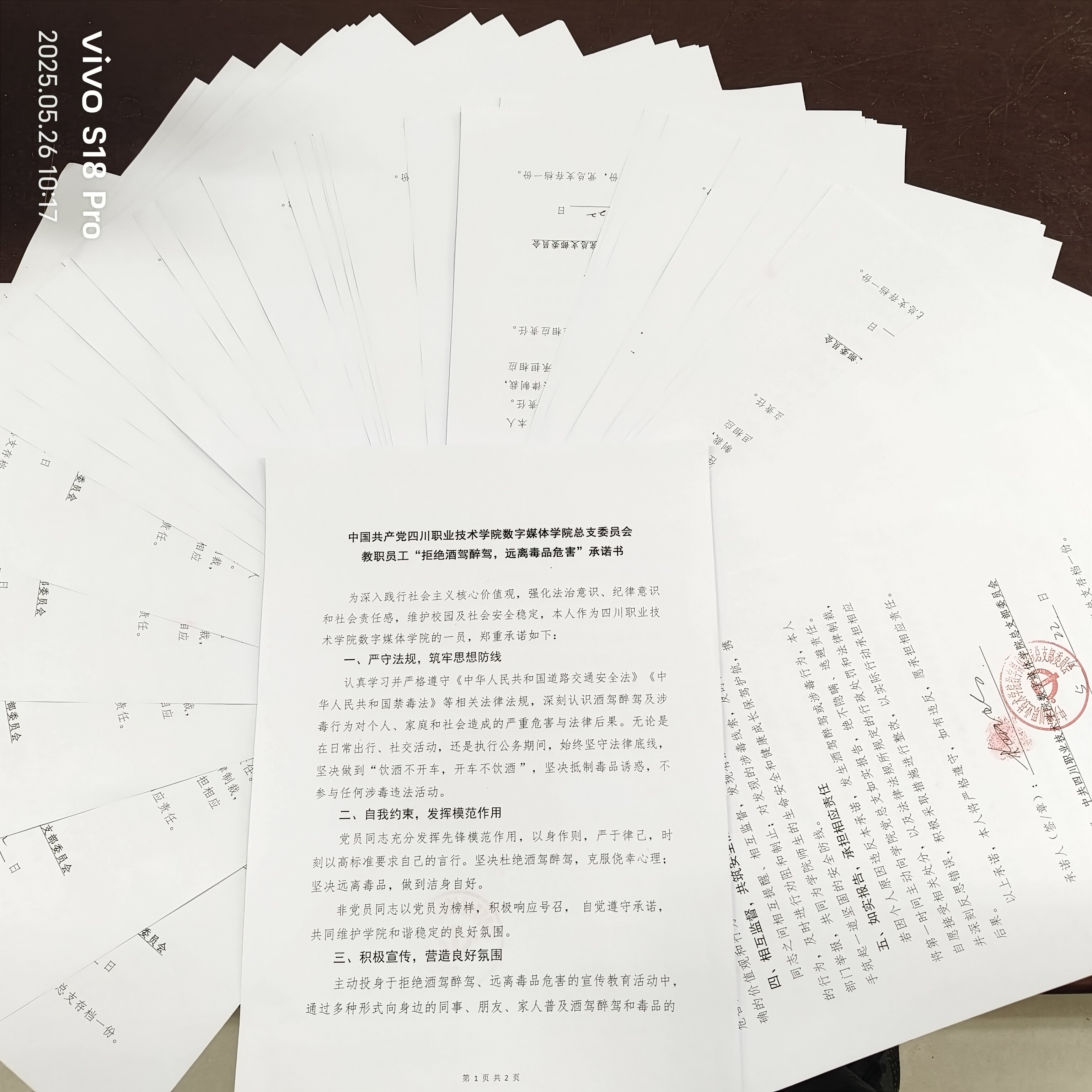 此次“拒绝酒驾醉驾,远离毒品危害”警示教育主题党日活动,是数字媒体学院党总支强化教职工纪律意识、安全意识的重要举措。通过学习、观影、承诺等多种形式,让法治观念与安全理念深入人心,进一步筑牢了思想防线,为学院各项工作的有序开展提供了坚实保障,也为营造全社会安全文明氛围贡献了教育力量 。