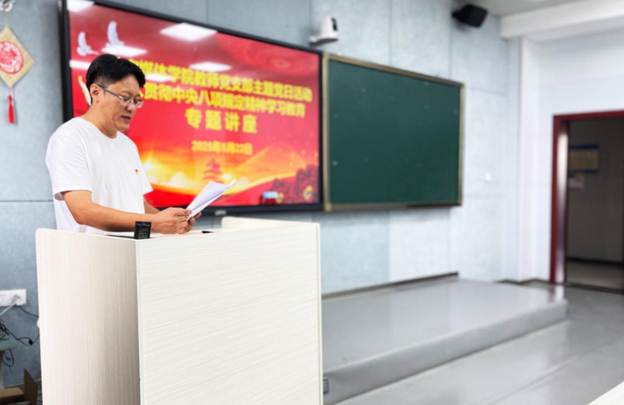 2025年5月22日下午,四川职业技术学院数字媒体学院教师党支部在博雅楼M415召开专题党课学习会,深入学习贯彻中央八项规定及其实施细则精神。会议由教师党支部书记蔡劲同志主持,支部全体党员参加学习。