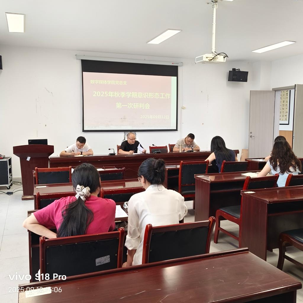 为精准把握秋季学期学生思想动态,统筹推进新校区搬迁后各项管理工作,切实筑牢校园意识形态安全屏障,9月 11日,数字媒体学院党总支组织召开2025年秋季学期第一次意识形态研判会。学院二级科长以上干部及全体辅导员参会,会议围绕核心任务深入研判、明确举措,为新学期意识形态工作谋好篇、布好局。