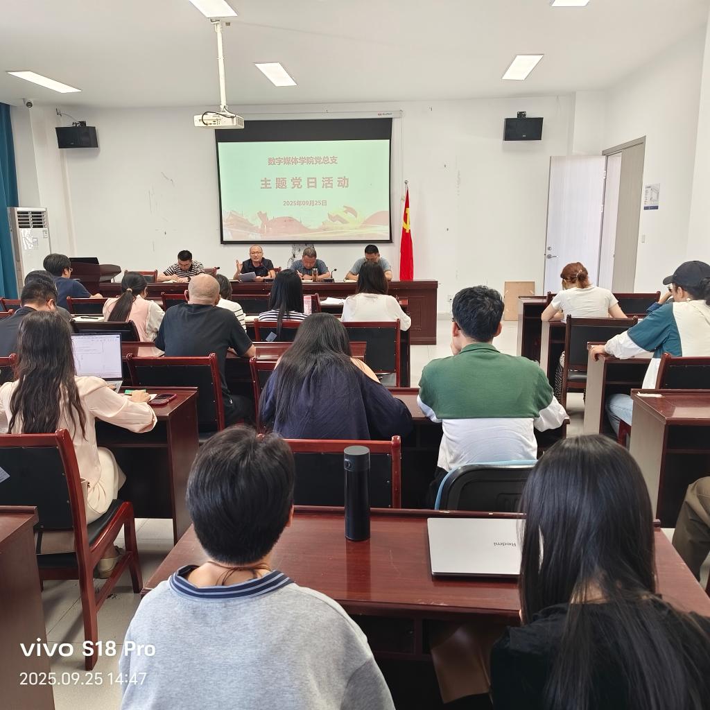 9月25日,数字媒体学院党总支在党员活动室隆重开展“重温入党誓词”主题党日活动,全体36名党员佩戴党员徽章、精神饱满参加活动,在庄严仪式中“充电赋能”,党总支副书记何意同志领誓。