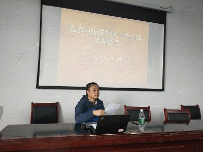 为培养和提高学生干部自我服务、自我管理的能力,发挥党总支、党支部、团总支对学生干部的领导、引导作用,保持艺术与传媒学院团总支学生会各部门工作顺利开展,更好的为师生做好服务工作,10月14日下午4点30分,在博雅楼M408会议室开展了两会学生干部培训会。党总支书记郭继华老师、党总支副书记何意老师参加会议,会议由何意老师主持。