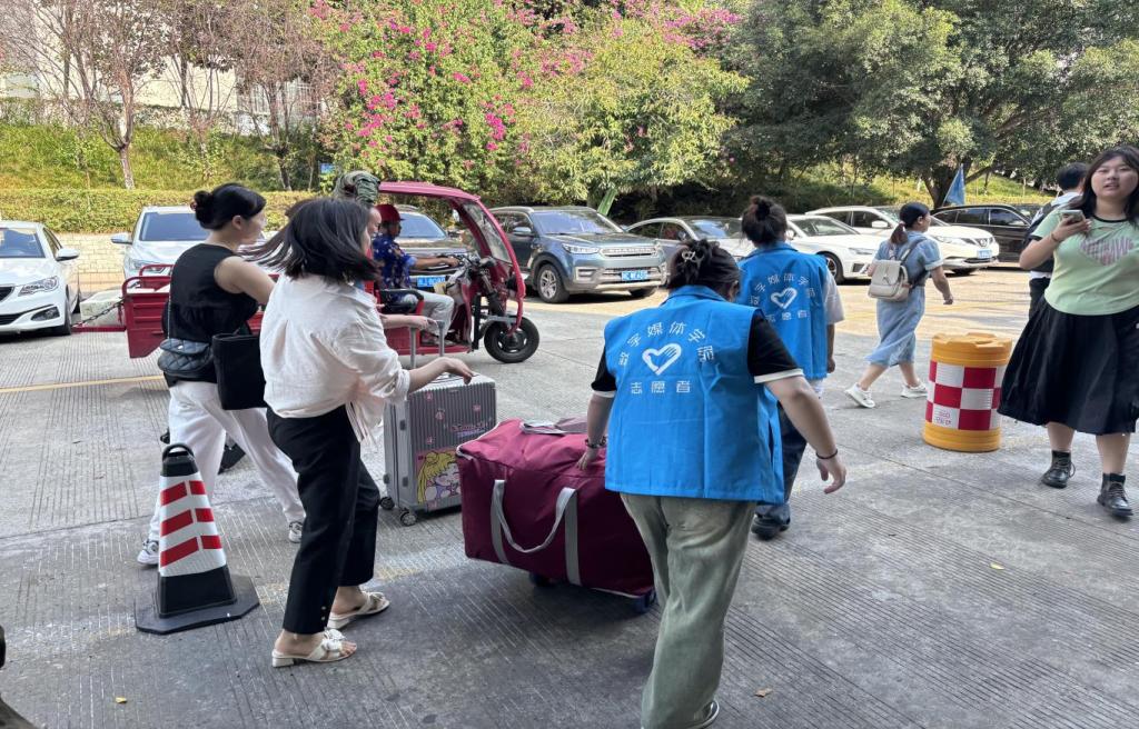 9月11日早上,一群热心的志愿者们早已准备就绪,他们以最饱满的热情迎接每一位新同学的到来。从校门到注册点,从注册点到寝室,志愿者们的身影无处不在,他们不仅为新生指引路线,还主动帮忙搬运行李,确保每位新生都能顺利抵达寝室,感受到家的温暖。