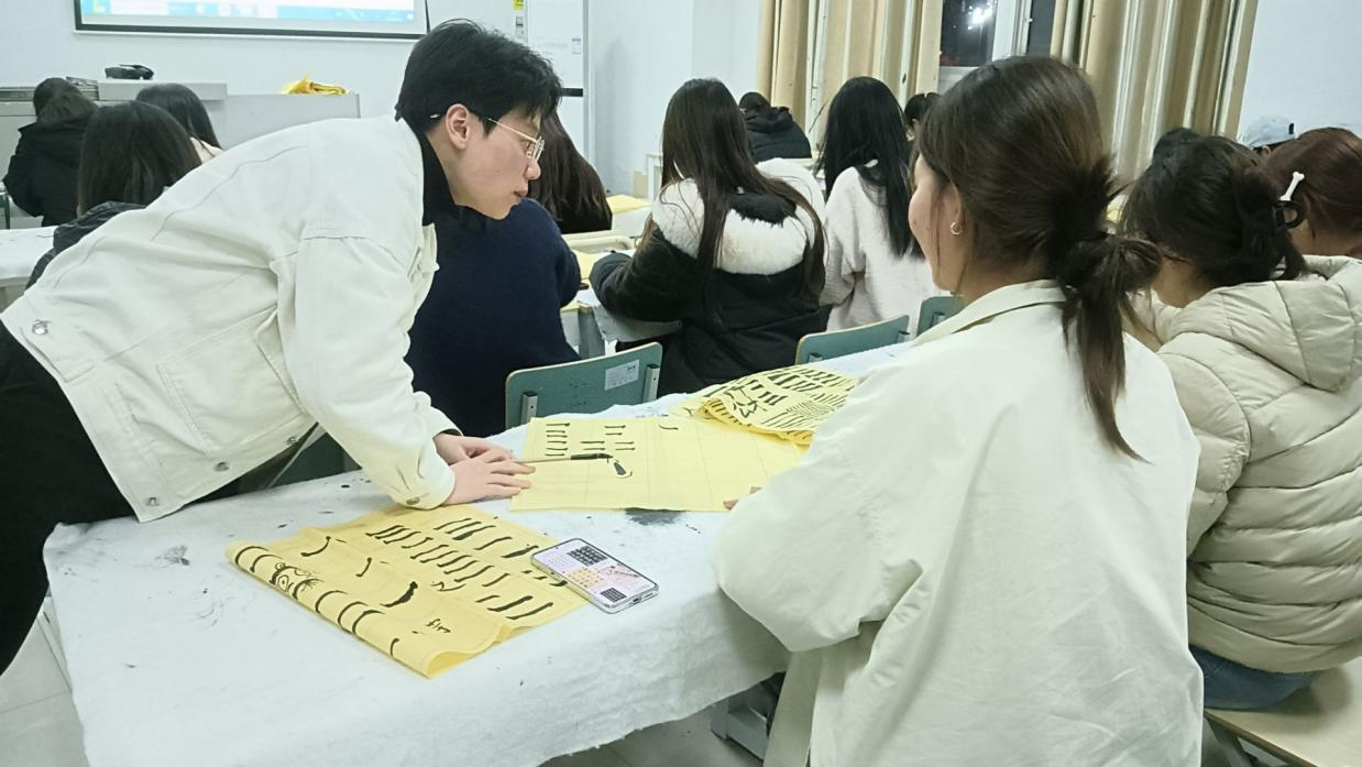 4月16日,数字媒体学院柔翰书画社在博雅楼M322教室成功开展第三次书法理论与技法培训,众多书法爱好者齐聚一堂,共同挥毫泼墨,领略中国书法的独特魅力。此次活动旨在传承和弘扬中华优秀传统文化,提升学员们的书法技艺,丰富校园文化生活。前期,书画社精心布置了培训现场,宣纸、笔墨等工具一应俱全,活动现场营造出浓厚的艺术氛围。本次活动特别邀请了书画社团指导老师郭镓雯担任此活动的指导教师,郭镓雯老师以丰富的书法经验和深厚的艺术造诣,为学员及其他书法爱好者带来了生动的书法理论知识讲解和精彩的书法技法指导。
