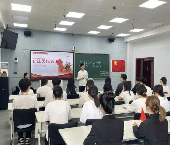 活动中,新老团员代表叶凌姣同学结合自身经历,分享了在共青团组织中成长的心得与责任担当;新团员代表王忠圆以铿锵誓言表达了坚定信念:“我们将以团徽为荣,勤奋学习、积极奉献,争做新时代优秀共青团员!老团员的寄语如同火炬,照亮了信仰的传承之路;而新团员的誓言,则是青春枝头绽放的信念之花。