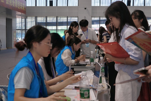 报到现场,学院设置了新生接待处、咨询服务台、行李寄存点等多个功能区域,志愿者们佩戴统一标识,引导新生完成信息核验,宿舍登记等流程,全程“一对一”贴心服务。
