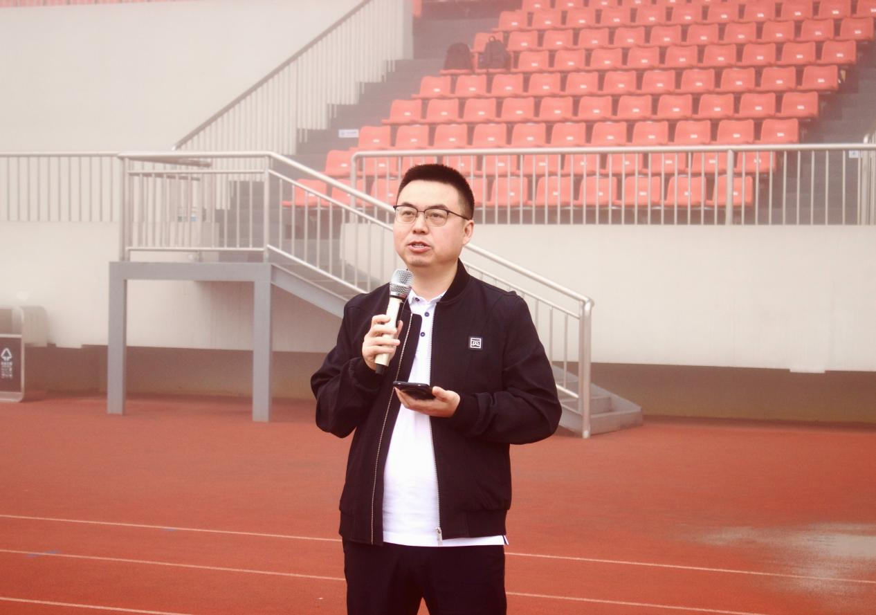 清晨7点30分,体育场上已是人头攒动,同学们精神抖擞,整齐列队。启动仪式在庄严的国歌声中拉开帷幕。学院党总支副书记何意首先为仪式致辞。他强调了体育锻炼对大学生身心健康和全面发展的重要性,指出健康的体魄是潜心学术、追逐梦想的基石。他鼓励同学们“走下网络、走出宿舍、走向操场”,将晨跑作为一天学习和生活的美好开端,在奔跑中磨练意志、增强体魄、锤炼品格,并将这种坚持不懈的精神运用到专业学习和未来的人生道路上。