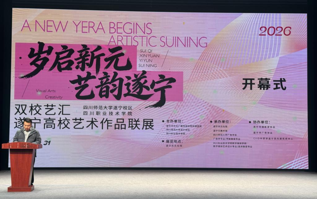 辞旧迎新之际,艺韵飘香遂宁。2025年12月31日,由四川职业技术学院联合遂宁市文化广播电视体育和旅游局、四川师范大学遂宁校区共同主办的“岁启新元·艺韵遂宁——双校艺汇遂宁高校艺术作品联展”在遂宁市文化馆开幕。