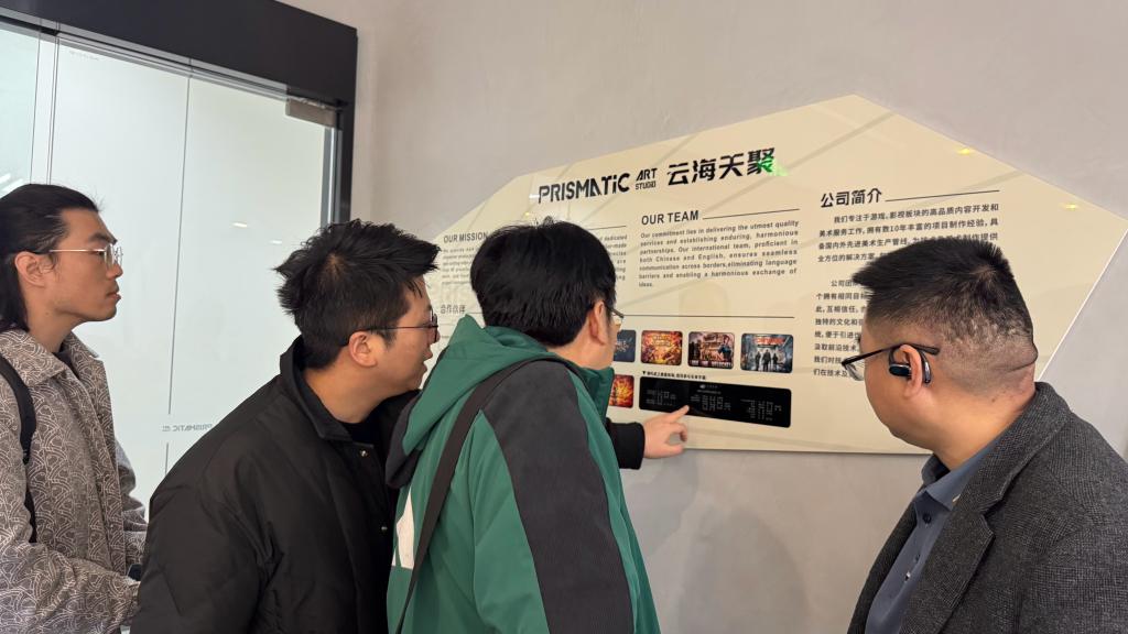 随后,考察组前往成都云海天聚科技有限公司。作为《哪吒之魔童闹海》核心制作方之一,该公司在游戏与影视美术内容服务领域实力雄厚,不仅是北美大厂微软公司的核心美术供应商,更凭借云端动画资产同步系统(AAMS)在行业内树立了技术标杆。企业联合创始人韩云龙接待了考察组,详细介绍了公司在数字动画创作、影视特效制作等方面的先进技术与生产管线,分享了参与顶尖IP项目的创作经验。
