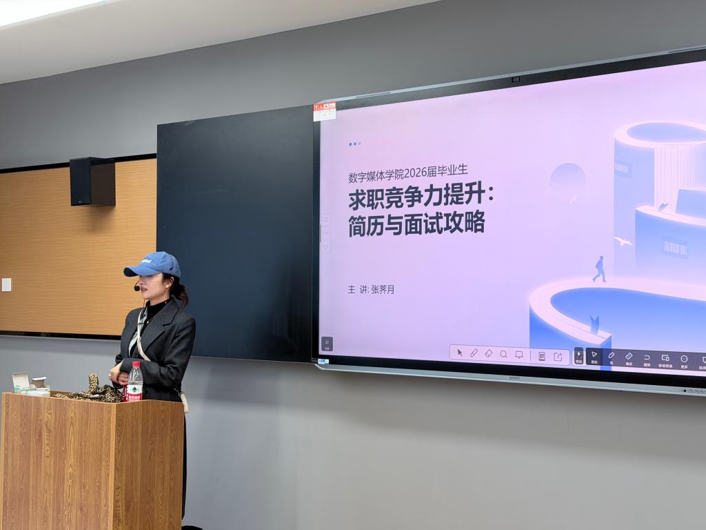 为精准破解2026届毕业生求职痛点,帮助学子打造专业求职竞争力,10月29日,数字媒体学院在龙凤校区B5-501教室举办2026届毕业生求职能力提升专题培训会,聚焦“简历制作”与“面试技巧”两大核心需求,邀请新媒体教研室张荠月老师主讲。学院2026届300余名毕业生现场参会,为即将开启的实习求职季“充电赋能”。